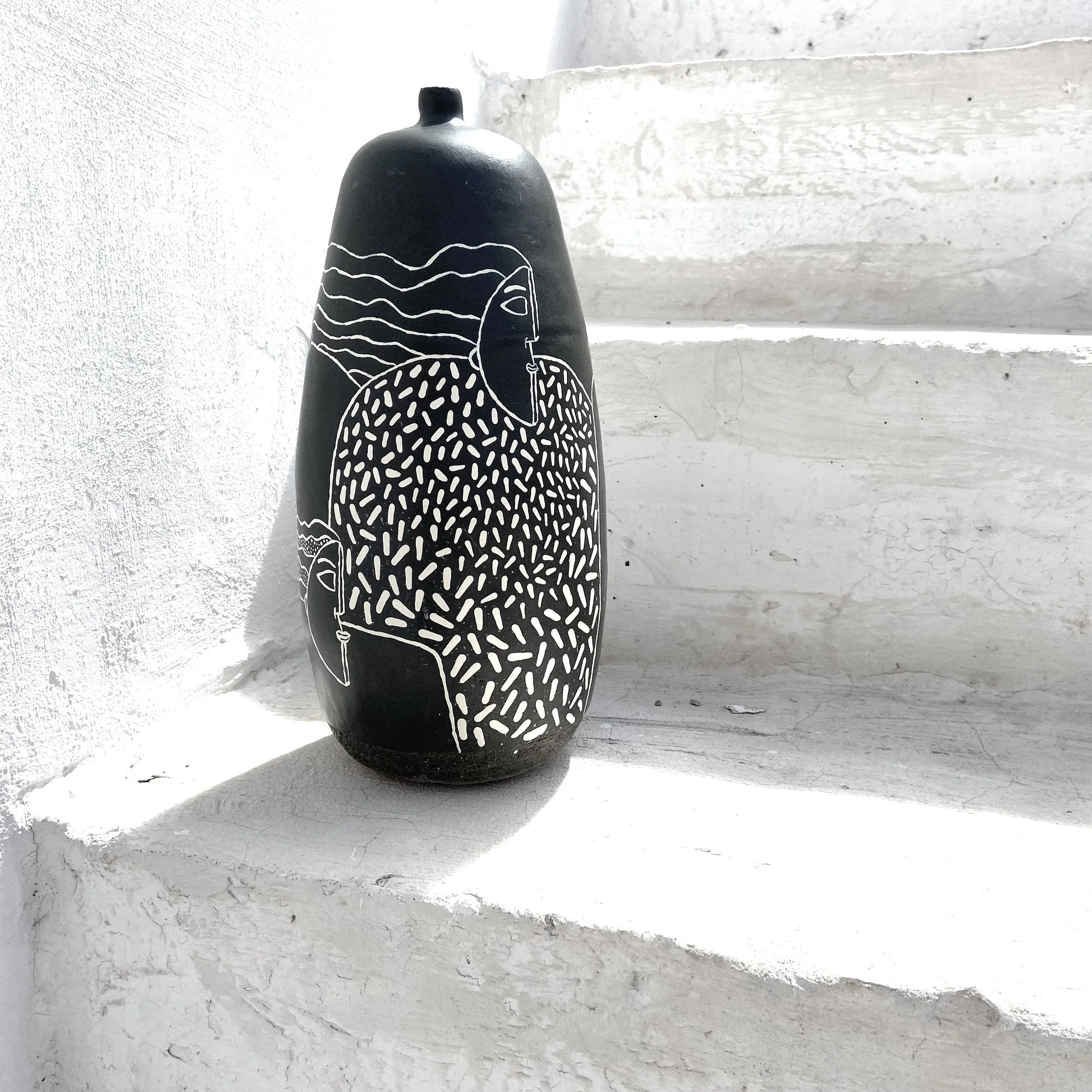 Myrsini’s ceramics are sculptural expressions of emotion. Drawing inspiration from meditterranean tradition, her vases become stand-alone works of art.